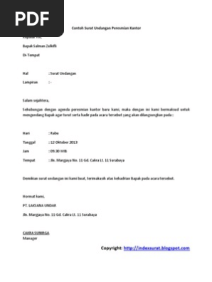 Surat jenis ini biasanya dikeluarkan oleh para mahasiswa yang memiliki kegiatan acara di luar kampus pada acara tertentu, atau bisa juga surat keputusan mandat mahasiswa dan lain sebagainya. By gadis saktika 29 september 2020 76257. Salam sejahtera, sehubungan dengan agenda peresmian kantor baru kami, maka dengan ini kami bermaksud untuk mengundang bapak agar turut serta hadir. Contoh surat undangan peresmian masjid. Kedua jenis surat ini memiliki peruntukan tersendiri dan tidak bisa digunakan pada sembarang tempat.